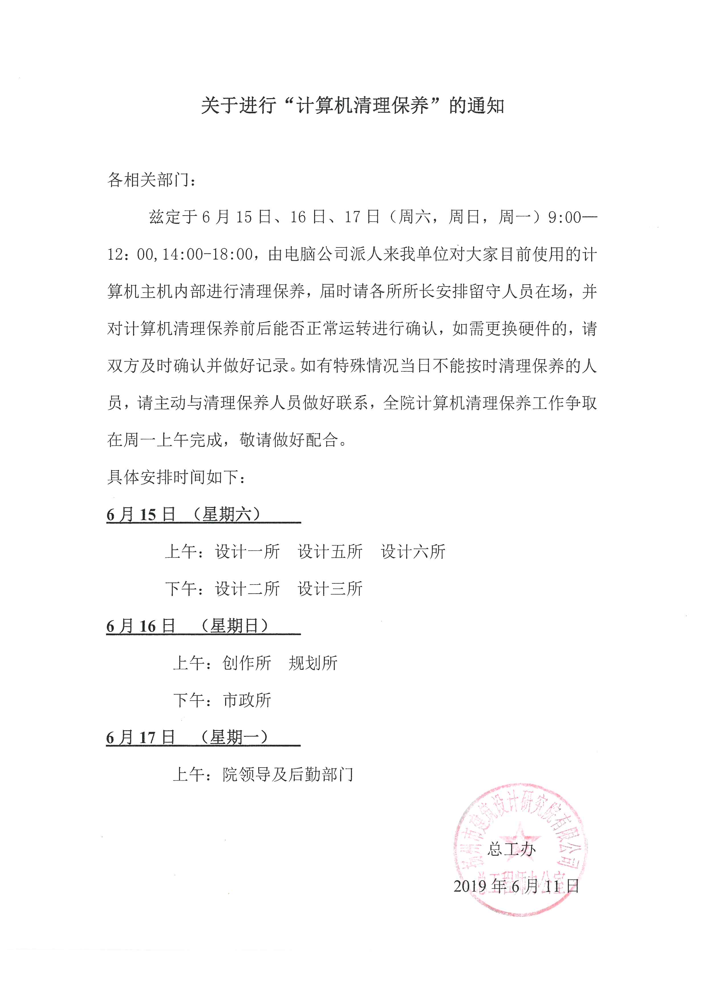 ·關(guān)于進(jìn)行“計算機(jī)清理保養(yǎng)”的通知 [2019-06-11]